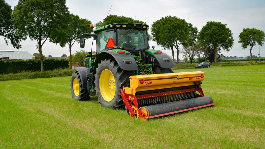 Die Vredo Schlitzdrille DZ229.07.5 ist ein robustes und präzises Nachsaatgerät, ideal für Landwirte und Lohnunternehmer, die kleinere Flächen effizient nachsäen möchten. Mit einer Arbeitsbreite von 2,9 Metern und einem Reihenabstand von 7,5 cm ermöglicht sie eine gleichmäßige Saatgutverteilung. Die Maschine ist mit einer glatten Walze ausgestattet, um eine optimale Bodenanpassung, insbesondere auf steinigem und unebenem Gelände, zu gewährleisten. Die präzise Ablage des Saatguts in idealer Tiefe fördert eine hervorragende Keimung und trägt zur nachhaltigen Grünlandpflege bei.